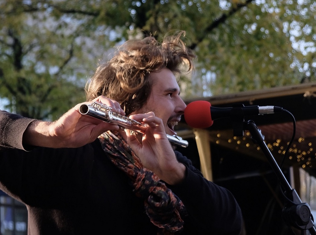 Du bout du Portugal jusqu'à la Bosnie, je sillonne pendant deux ans les routes d'Europe en proposant ma musique dans les rues. Je fais mes débuts en beatbox sur ma flûte traversière. Rapidement je vais me mettre à travailler au looper avec tous mes instruments. Ce sont les débuts de mon projet actuel.